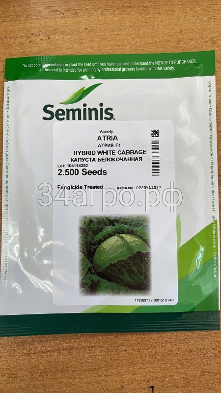 Атрия F1 средняя капуста, созревание через 120-125 дней.
