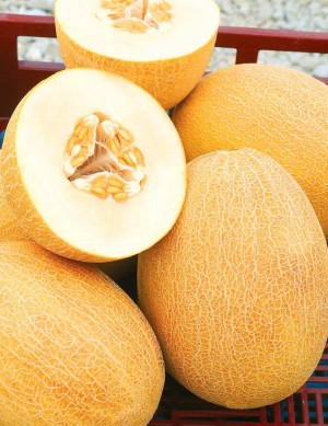 Дыня Адон F1 - Высокоурожайное растение с отличной укрывной способностью и прекрасной транспортабельностью. На одном растении формируется по 5–6 овальных плодов массой около 2 килограмм.