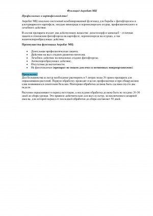 Cистемно-трансламинарный фунгицид для защиты картофеля и томата от фитофтороза и альтернариоза.