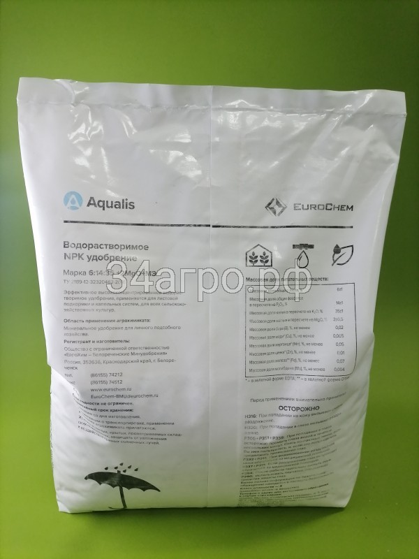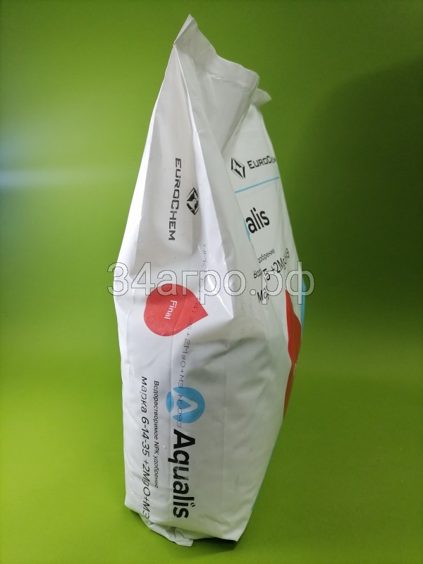 Удобрение Aqualis Final (Аквалис Финальное) NPK 6:14:35 – комплексное водорастворимое агрохимическое средство с повышенным содержанием соединений калия и с низким содержанием соединений азота. Используется в конце периода вегетации культур с целью стимулирования их цветения или развитие плодов – удобрение усиливает поступление полезных веществ в продуктивные части растения и повышает в них содержание сухих веществ. При этом Аквалис Финальное не способствует развитию листовой части растений. Содержащиеся в препарате магний, сера и микроэлементы формируют красивые, сочные и крепкие плоды у овощных культур, повышают качество зерна и корнеплодов.