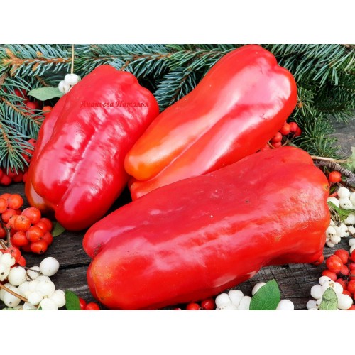 Описание растения: Среднеспелый сорт. Для открытого грунта и пленочных теплиц. Период от высадки рассады до плодоношения 70 - 75 дней. Высота растения в открытом грунте 45 - 60 см. Плод удлиненно-кубовидный, четырехгранный, длина до 14 - 15 см, толщина стенок 6-8 мм. Окраска в технической спелости зеленая, в биологической- красная. Устойчивый куст позволяет выращивать сорт в открытом грунте без подвязки. Биологические особенности: Сладкий перец любит легкий грунт, заправленный перепревшим навозом или компостом, и регулярный своевременный полив. Легкие и средние суглинки также подходят. Но они имеют способность быстро уплотняться, особенно после поливов и требуют постоянного рыхления. Устойчивость к условиям среды и болезням: Сорт устойчив к вирусу тобачной мозаики. Агротехнические особенности: Посев 10-20 марта, высадка рассады 10-20 мая, схема посева 60 х 40 см, уборка урожая 20 июля-30 августа. Урожайность: 3,5 кг/м2. Качественные характеристики: Великолепные вкусовые качества. Использование: Универсальное использование.