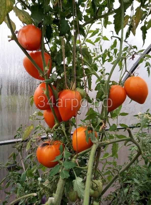 Высокоурожайный среднеспелый сорт с красивыми и вкусными плодами. От всходов до плодоношения 105-110 дней. Растения индетерминантные, высотой в теплице 1,6-1,8 м. Первые томаты достигают массы 500 г, остальные 300-340 г. Плоды мясистые, с небольшим количеством семян, сладкие и ароматные. Один из лучших салатных сортов, подходит для приготовления соков и соусов. С одного куста в открытом грунте собирают около 5 кг томатов, а в защищенном – до 12 кг. Сорт устойчив к ВТМ, кладоспориозу и альтернариозу.