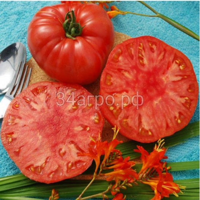 Семена томата "Гигант красный" (Gigant krasnyj) принадлежат к любительскому, крупноплодному сорту. Растение сильнорослое, может достигать в высоту 1,5-1,8 м. Сорт среднеспелый, созревает на 105-110 день после появления первых всходов. Плоды крупные, масса варьируется от 250 до 500 грамм. Они плоскоокруглой формы, красного цвета, с нежной кожицей. Мякоть плода мясистая, сочная, сладкая на вкус. Основная ценность сорта – высокая урожайность, с 1 кв. м собирают 10-12 кг. Также культура устойчива к основным заболеваниям. Используют плоды в свежем виде и для переработки.
