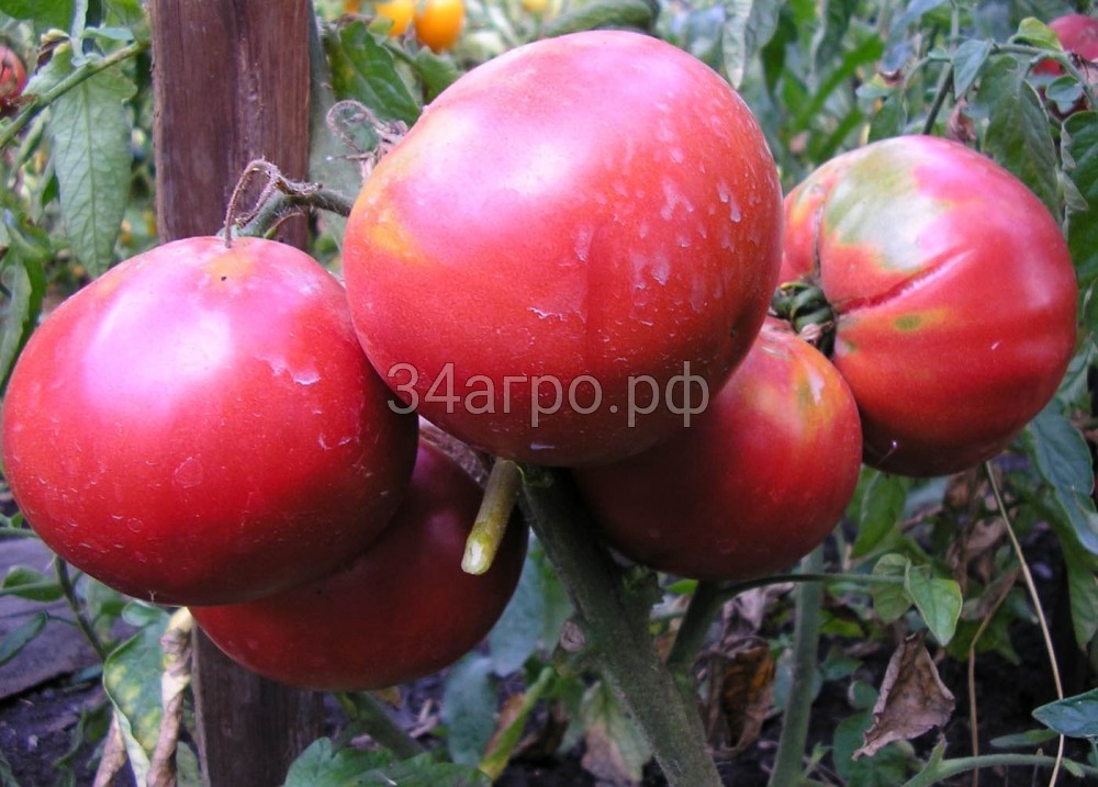 Популярный среднеранний сорт с крупными и вкусными розовыми плодами. Растение высотой 1,2-1,5м, массо плодов до 500гр. Плоды красивые, ровные, яркой розовой окраски, с очень высоким содержанием сахаров.